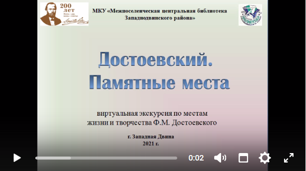 Известному писателю, любимому как на родине, так и за ее пределами, центральная библиотека посвящает виртуальное путешествие. Оно пройдет по местам, связанными с жизнью и творчеством Достоевского и позволит окунуться не только в его «географию» жизни, но и позволит прочувствовать атмосферу того времени.