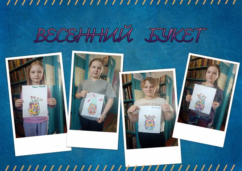 На одном из мероприятий в Бенецкой библиотеке юные читатели вспомнили художественные произведения, где живут и встречаются цветы, а также создали аппликацию «Весенний букет".