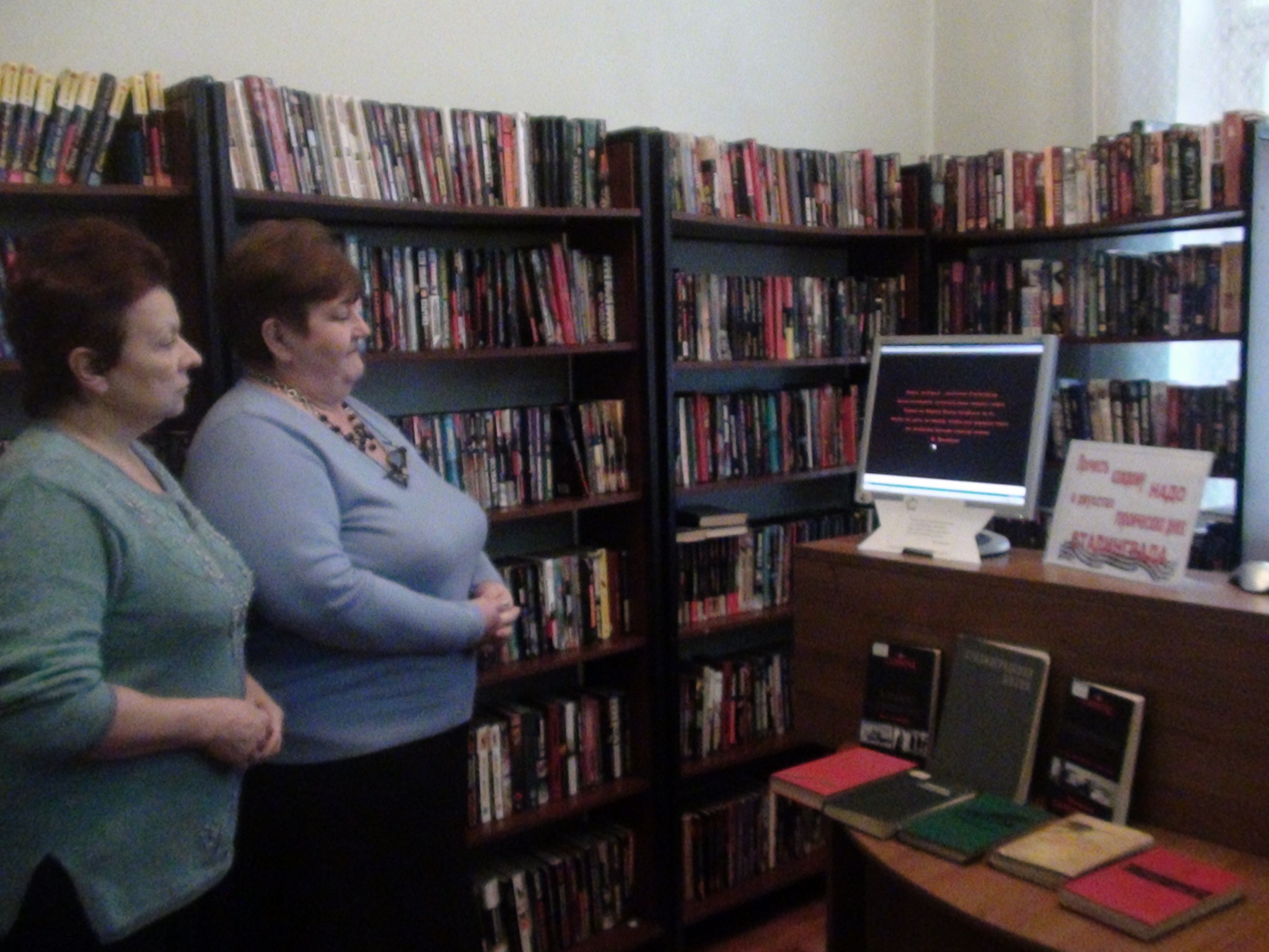 Для читателей библиотеки в течении дня  демонстрировались кадры военной хроники Сталинградского сражения и виртуальная выставка «Сталинградская битва в художественной литературе»