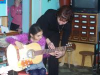 Ребята с удовольствием приняли участие в этом мероприятии. Они активно отвечали на вопросы викторины и внимательно слушали как романсы, колыбельные, так и игру на гитаре ребят из гитарного кружка. А в конце встречи детям был дан мастер – класс игры на гитаре.