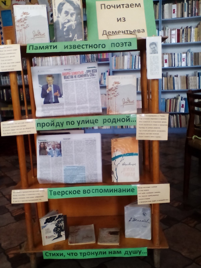 К 90-летию всеми любимого поэты Андрея Дементьева в Ильинской библиотеке оформлена книжная выставка «Почитаем из Дементьева».