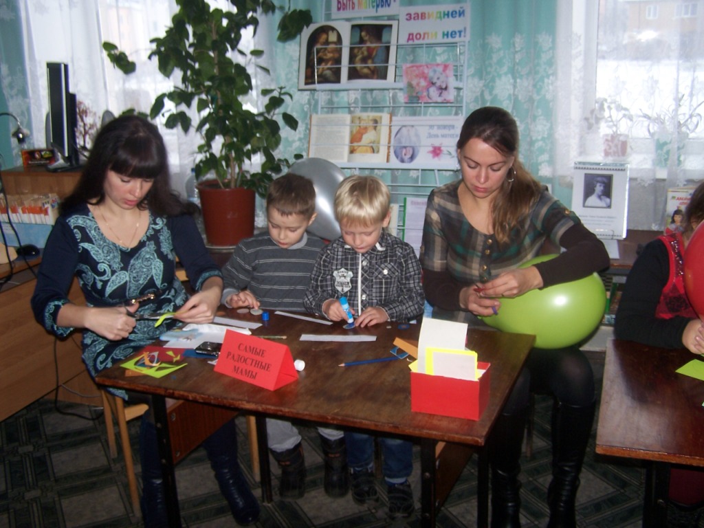 Встреча состоялась в преддверии праздника Дня Матери. Мамочек пригласили в «Мамино кафе» , где им предложили три блюда «Поздравленья от всей души» - дети дарили стихи своим мамам, фирменное блюдо «Моя мама» - видеофильм про мам, третье блюдо «Я сама» - мамы принимали участие в различных конкурсах. В конце мероприятия все мамы получили медали и памятные сувениры. Закончилась встреча чаепитием.