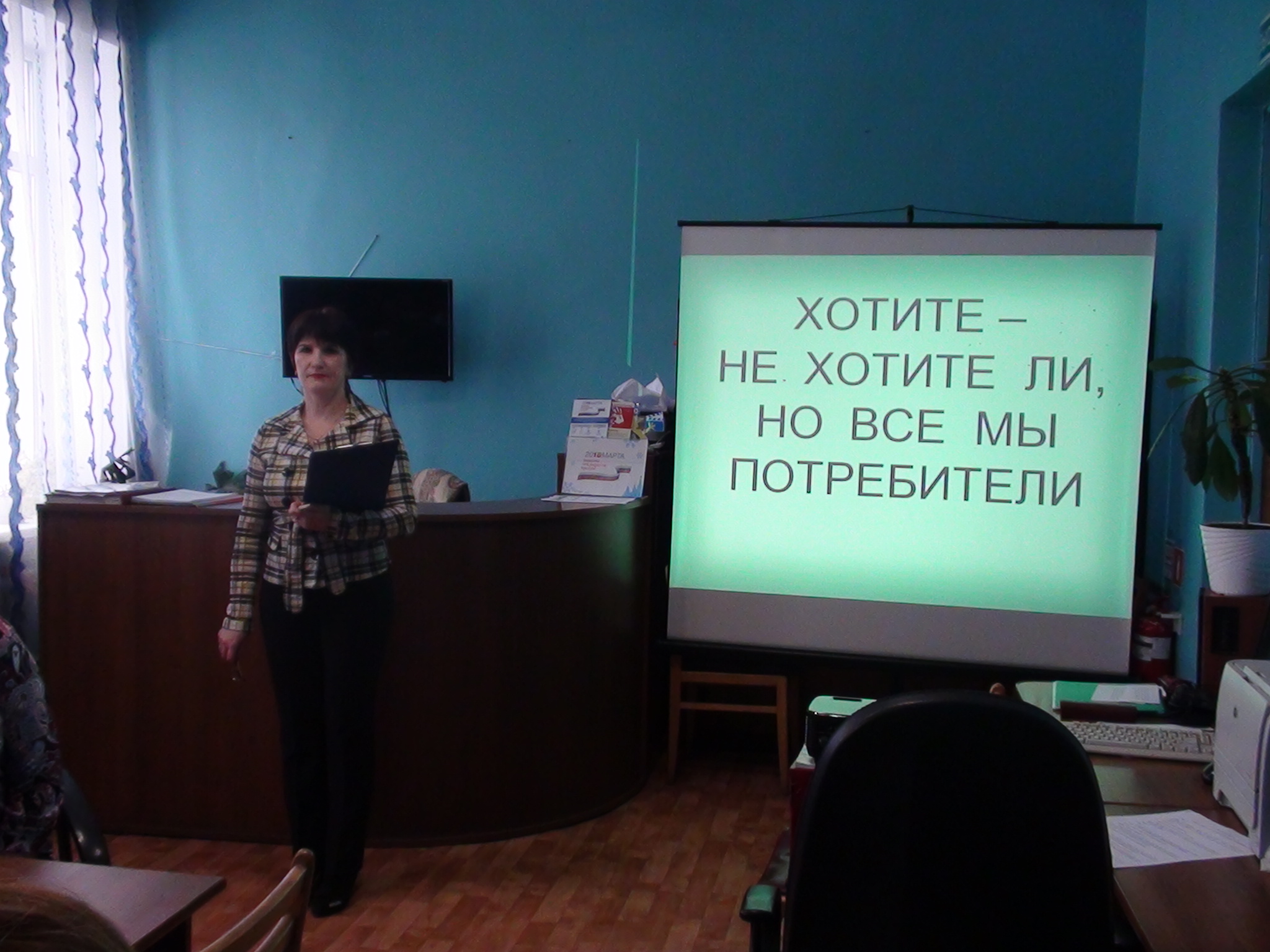 Ученики просмотрели презентацию «Хотите, не хотите ли, но все мы потребители», в которой поэтапно изложена история возникновения этого праздника. Также ученики узнали, кто такой потребитель, почему и как нужно защищать его права. Кто является основным защитником прав потребителей в России и у нас в районе.