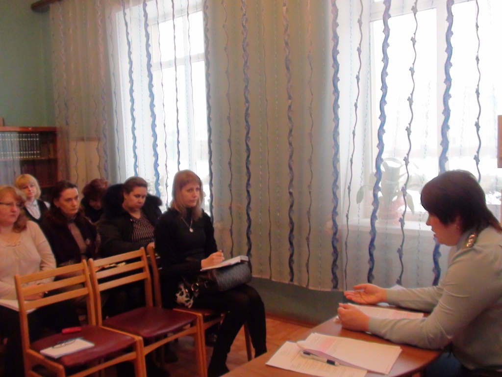 Перед присутствующими выступила Терешкович Н.М.- главный. государственный. налоговый инспектор отдела регистрации, учёта и работы с налогоплательщиками МРИ ФНС России №5 по Тверской области. Она рассказала присутствующим об изменениях в налоговом законодательстве в 2015 году. Было дано разъяснение по трём вопросам: