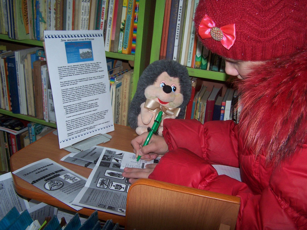 Птиц зимой обязательно нужно подкармливать. Мы решили не оставаться в стороне и провели 14 января экологическую акцию «Покормите птиц зимой». Тем читателям, которые приходили в этот день на абонемент выдавались буклеты, в которых для ребят были опубликованы советы по кормлению птиц, разные виды кормушек. Читатели разгадывали кроссворд и знакомились со списком книг, которые можно почитать в библиотеке. На видном месте было помещено стихотворение Яшина «Покормите птиц зимой…».
