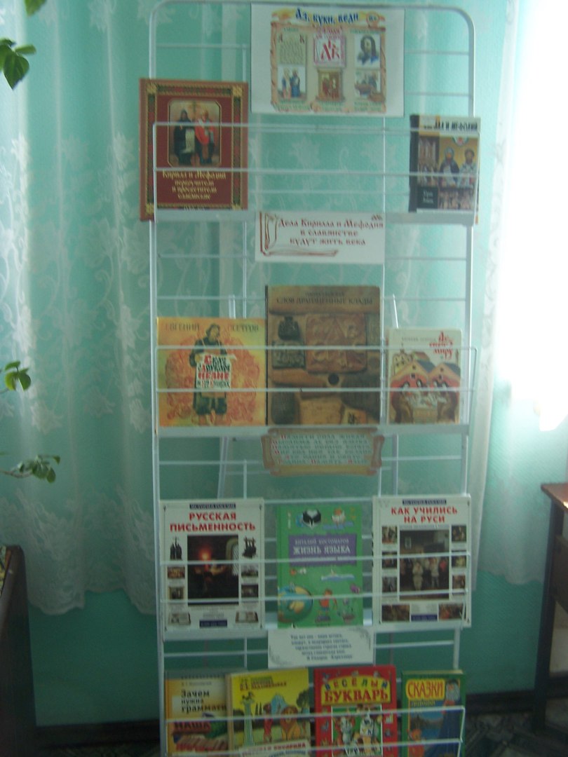 Для всех желающих в читальном зале была оформлена выставка книг «Аз, буки, веди…» и для воспитанников детского сада №1 проведен библиотечный час «Аз, да Буки, а потом науки».