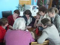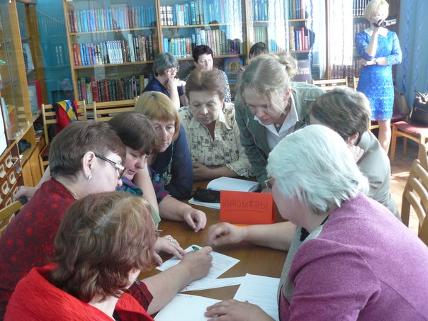 Затем началась игра, которая заставила поднапрячь память наших замечательных игроков. Им пришлось пройти 8 игровых этапов – они отвечали на вопросы о кино, угадывали книги по аннотации к фильму, называли фильмы по одному из кадров, вспоминали музыку к фильмам, искали названия мультфильмов в файнворде, по гриму узнавали знаменитых российских актеров, по крылатым фразам отгадывали отечественные фильмы, расшифровывали криптограмму по цитате кинорежиссера. В непростом соревновании с небольшим перевесом выиграла команда читателей «Мотор», чем заслужила почетные медали знатоков и приз от библиотеки. Однако равной по веселости и задору команде библиотекарей «Киноманы» на вечере не было. Судило игроков почетное жюри, состоящее из заведующей отделом культуры, директоров Библиотеки и Районного дома культуры.