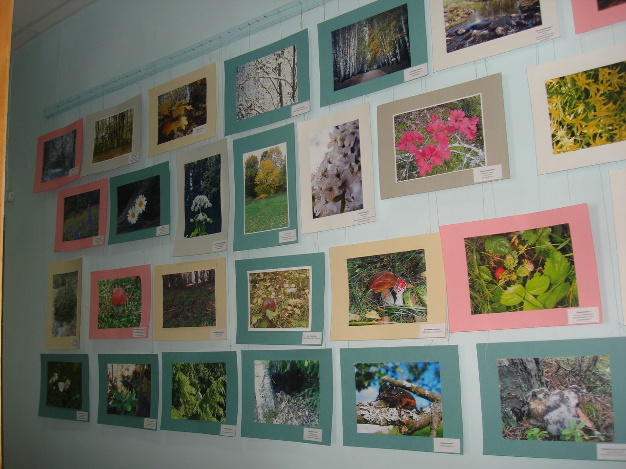 На выставке представлены фотографии леса, его флоры и фауны, сделанные в ходе занятий по изучению леса, походах учащимися станций юных натуралистов области. Отдельным разделом выставки стали творческие поделки местных мастеров из дерева, капа, сучков - Валерия Баженова и Сергея Фионова.