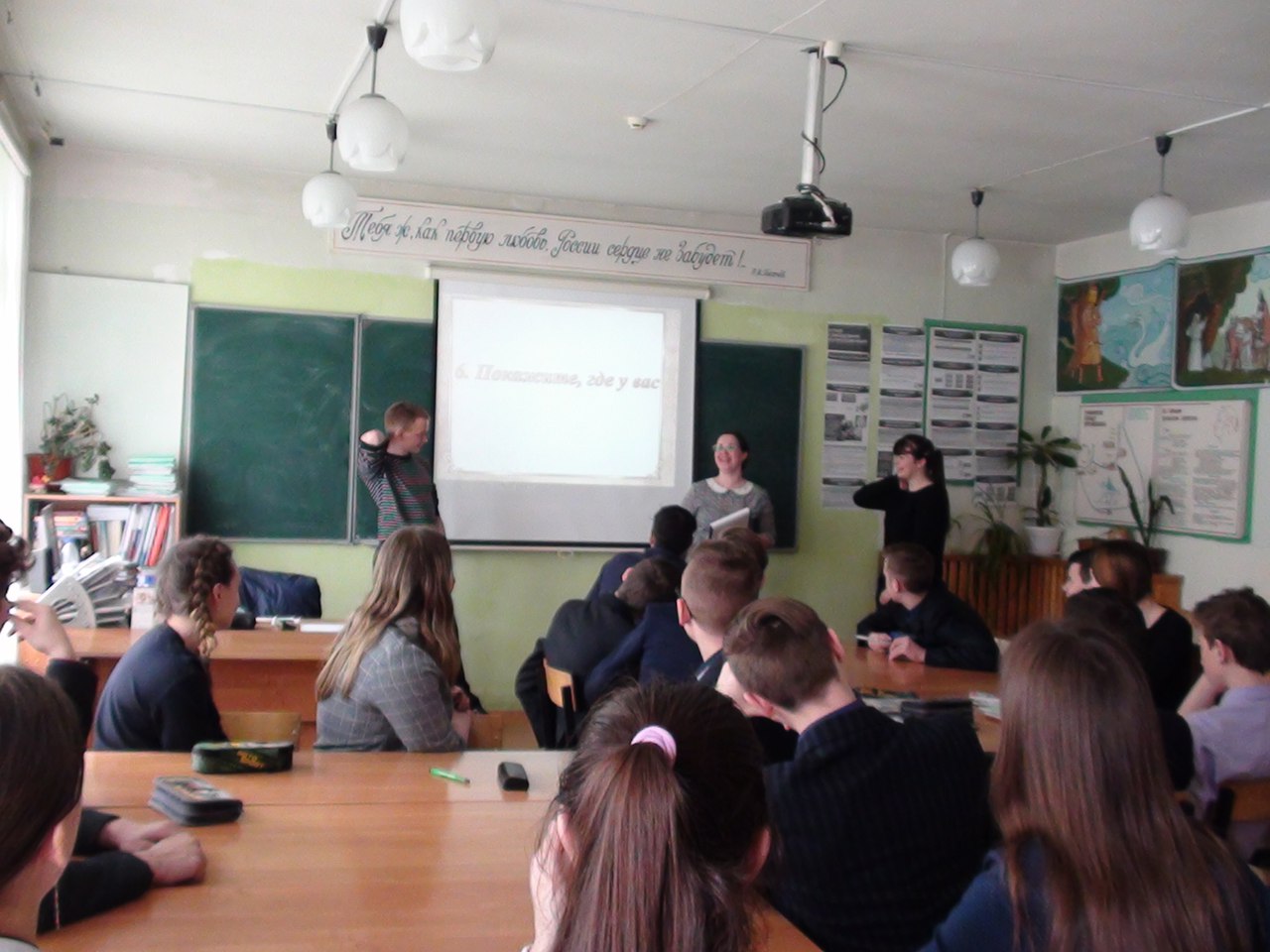 Мы с радостью откликнулись на приглашение средней школы №1 принять участие в Неделе русского языка, подготовив для учащихся лингвистическую игру «Знатоки русского языка». Мероприятие прошло в 7-х и 9-х классах. Его открывал просмотр видеоролика на стихотворение И. С. Тургенева «Русский язык». Далее ребята делились на команды-участницы, которым предстояло пройти 8 конкурсных состязаний: вспомнить название словарей русского языка и народные пословицы, выполнить увлекательные задания на смекалку, угадать предмет, вложенный в «Волшебный сундучок». Но сложнее всего ребятам было назвать «горожан», проживающих в предложенных им городах. В заключение игры мы вместе просмотрели видеофильм «Интересные факты о русском языке». Среди 9-классников команда «Корень» уступила победу своему противнику - команде «Суффиксы». А среди 7-классников одержала победу команда «Кавычки», в упорной борьбе обойдя «Суффиксы».