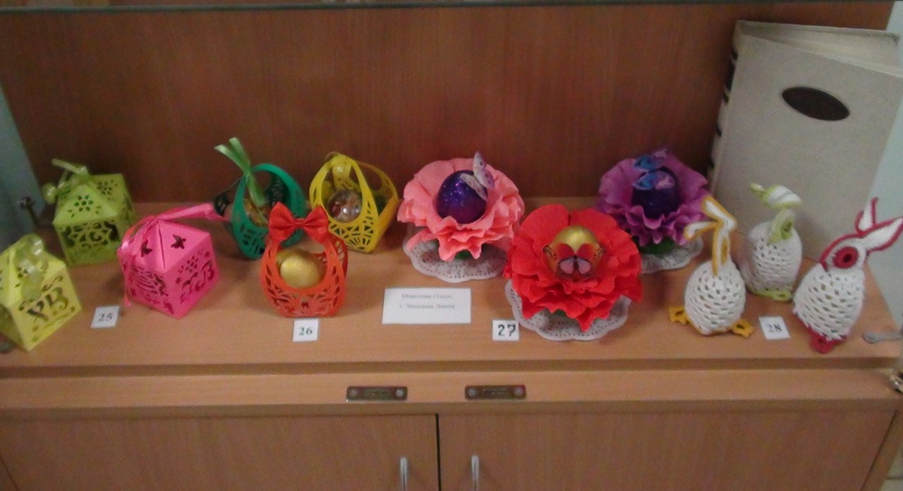 Представляем вам выставку поделок наших читателей и библиотекарей к Пасхальному празднику, которая размещена в фойе библиотеки.