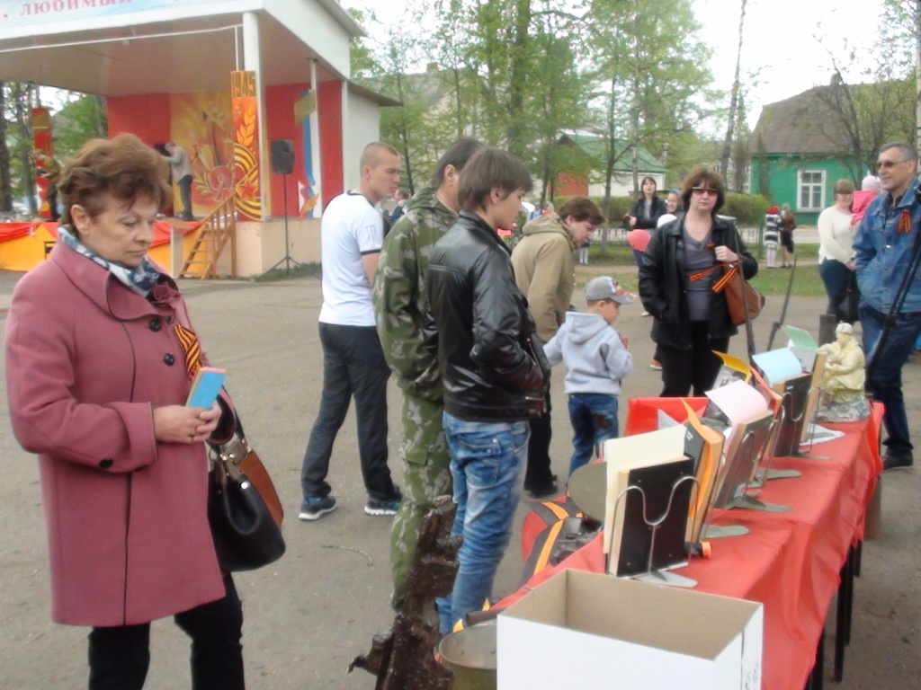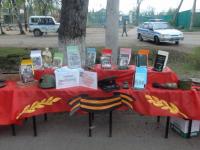 В день празднования Победы в городском саду центральная библиотека совместно с краеведческим музеем представила книжную выставку-инсталляцию «Любимые книги о войне».