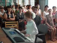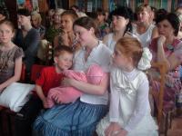 Семья Гаврышкив стала победителем областного конкурса «Семья - 2015» в номинации «Духовное воспитание». Глава семьи отец Тарасий рассказал о том, как появилась их семья, что для них с матушкой главное, познакомил с детьми, коих в семье воспитывается шестеро. Матушка по необходимости дополняла его рассказ, а старшие девочки исполнили небольшой концерт для собравшихся, их поддержали воспитанницы воскресной школы Никольского храма. Они исполнили тропарь, посвященный святым благоверным Петру и Февронии. По окончании встречи гости преподнесли в подарок библиотеке книгу «Святость материнства», с которой можно познакомиться на выставке «Православная полка» в читальном зале. Во время встречи дети, пришедшие на мероприятие вместе с родителями, в детском отделе посмотрели мультфильм «Сказание о Петре и Февронии» и своими руками смастерили подарок для родителей – символ праздника ромашку.