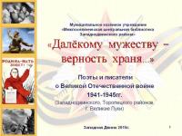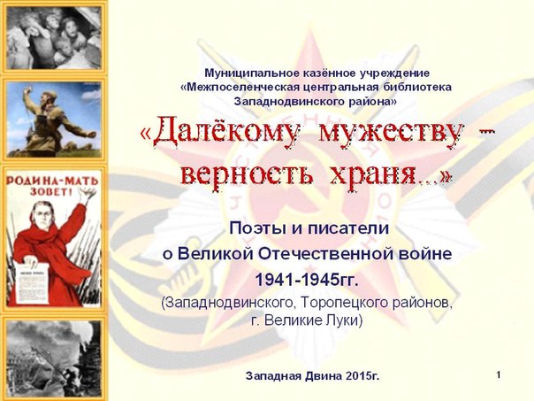 В преддверии юбилея Великой Победы Центральная библиотека предложила западнодвинским поэтам и писателям (то есть тем, кто увлекается литературным творчеством) принять участие в акции «Далекому мужеству – верность храня», итогом которой стал бы выпуск сборника произведений местных авторов о Великой Отечественной войне.