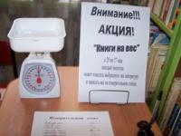 В детском отделе в течение нескольких дней проходила акция «Книги на вес». Здесь читателям предлагалось взвесить выбранные книги, а вес полученного «книжного улова» записывался на информационном плакате. Таким образом, за время акции читатели взяли на дом 61 книгу, общим весом 16 кг 940 г. Наиболее богатым на «улов» стало 26 мая, читателями были взятии книги общей массой более 6 кг. Наибольший личный вес принадлежит семье Забловых, их общий вес книг для семейного чтения равен – 5 кг. А вот «читателями-тяжеловесами» стали сестры-близнецы Люба и Настя Смирновы, читательский вес каждой из них составил по 1 кг.