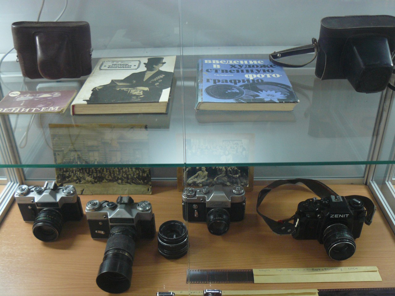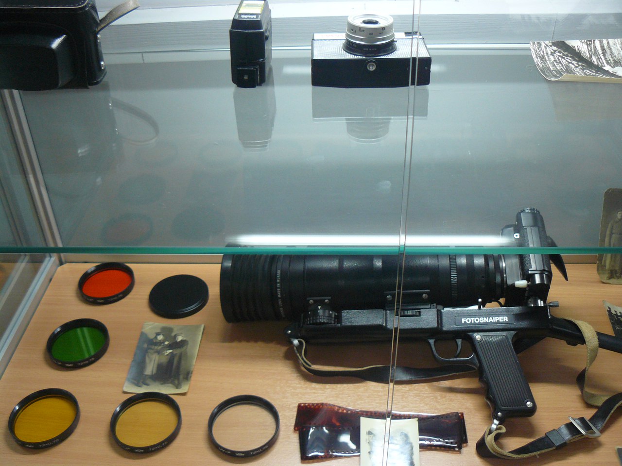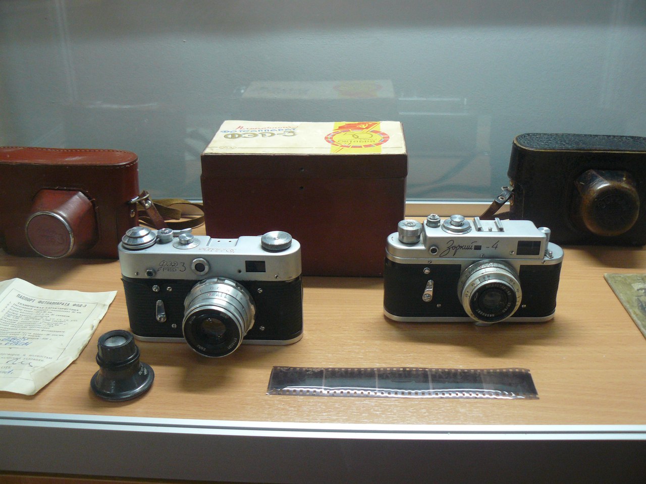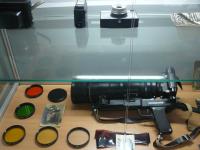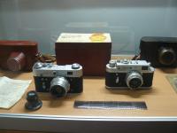 На ней представлена фотографическая техника, выпускавшаяся в СССР в разные годы. От первого любительского узкопленочного фотоаппарата «ФЭД», производство которых наладила на базе немецкой «лейки» в 20-е годы прошлого столетия трудовая коммуна им. Ф.Э. Дзержинского, откуда, собственно, и пошло название фотоаппарата, до вершины советской бытовой техники фоторужья «ФС-12 Фотоснайпер» с 300-мм объективом, появившегося на прилавках специализированных магазинов в не столь уж далеком 1992 году.