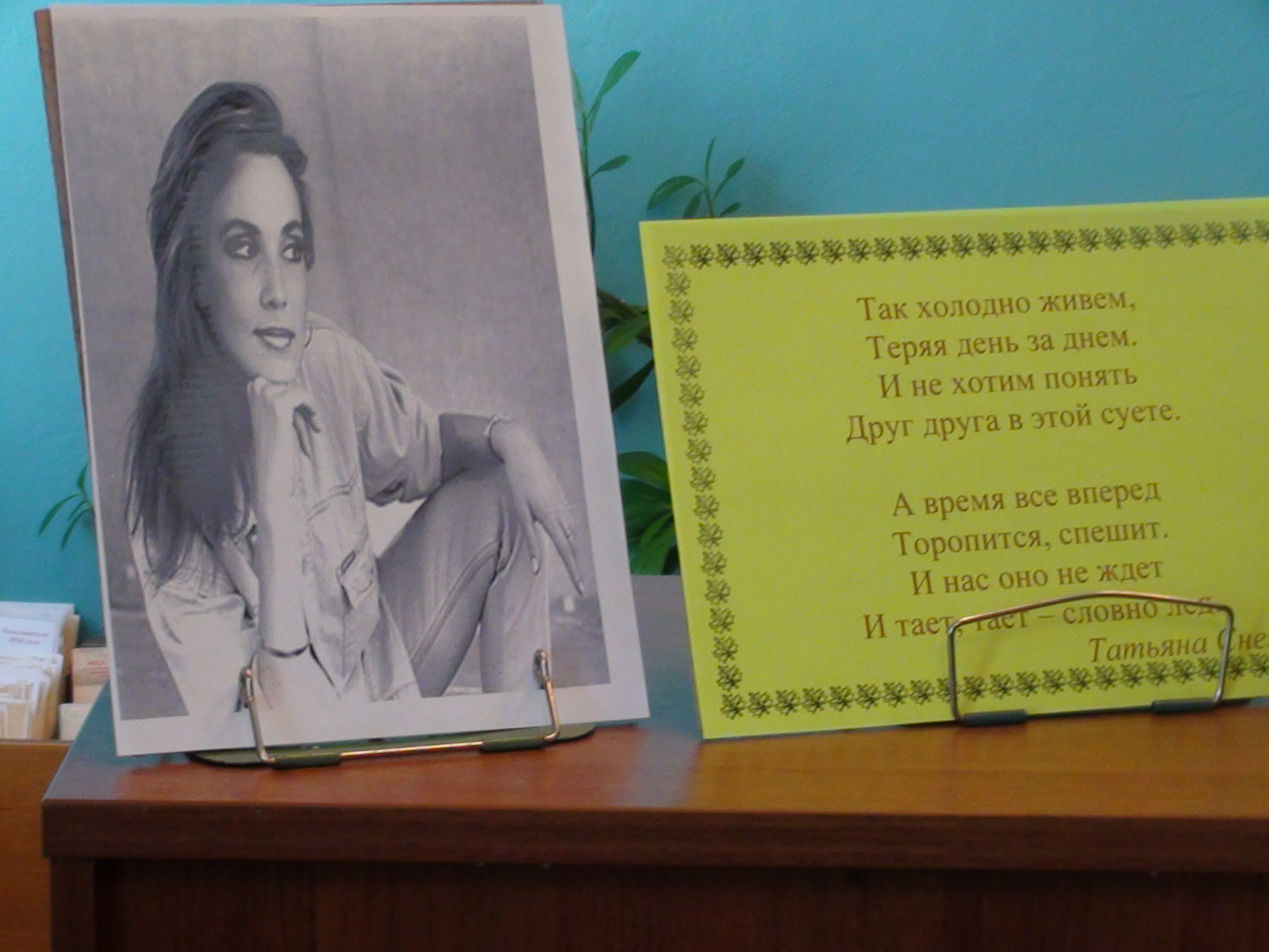 27 апреля в читальном зале библиотеки для читателей библиотеки прошла литературно-музыкальная композиция по творчеству Татьяны Снежиной, поэтессы рано ушедшей из жизни. На вечере звучали стихи и записи песен Снежиной, были представлены семейные фотографии. Вечер продолжился знакомством с творчеством нашей землячки – Валентины Ивановны Фоменковой, проживающей в деревне Дуброво. Ее трогательные, очень музыкальные стихи покорили всех присутствующих.