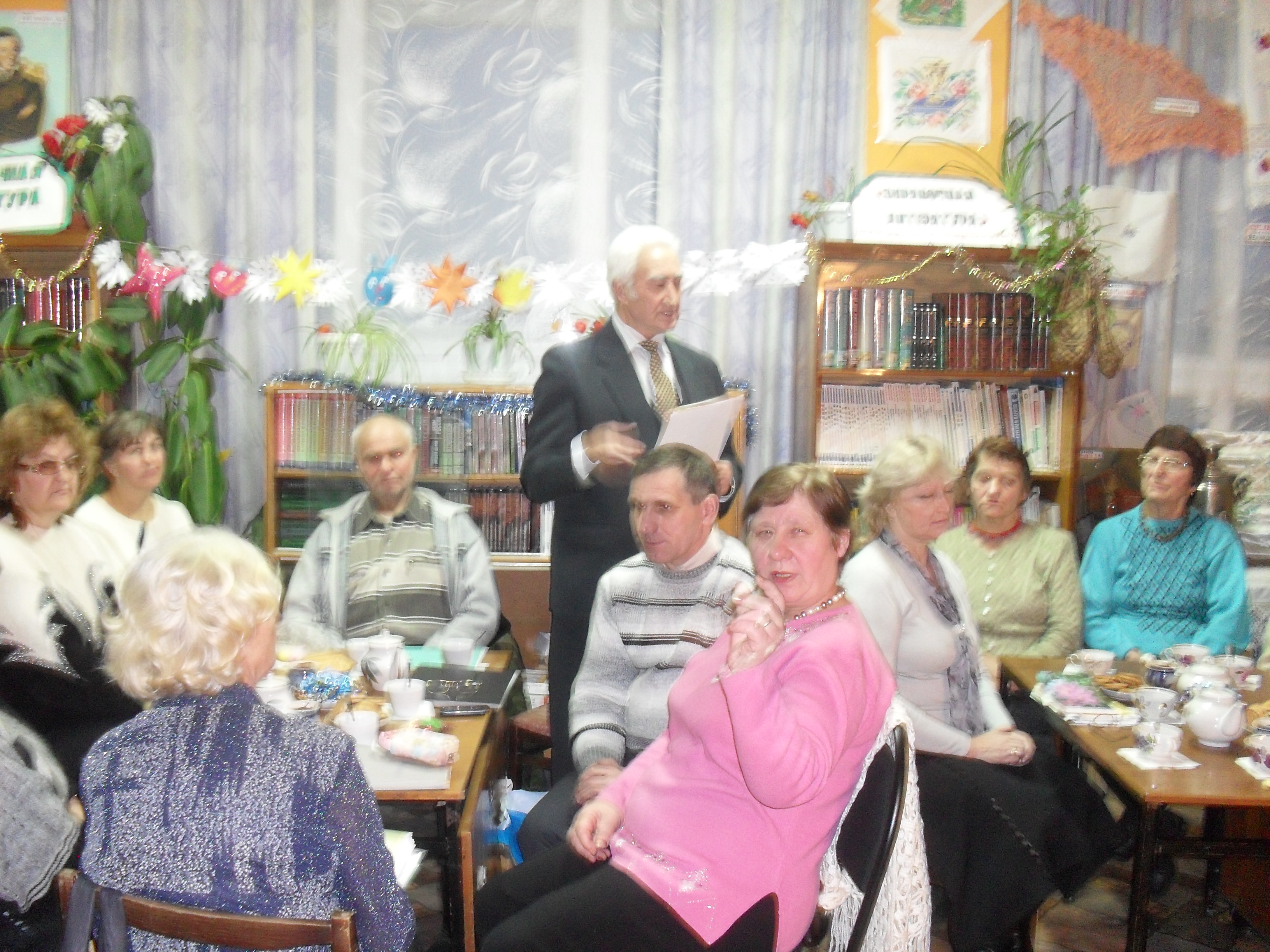 16 декабря прошла встреча творческого актива Клуба интересных встреч с читателями Ильинской сельской библиотеки. Мероприятие началось с представления презентации об истории клуба и знакомства с его членами. При этом каждый, о ком говорилось, знакомил собравшихся со своим творчеством - читал стихи, прозу.