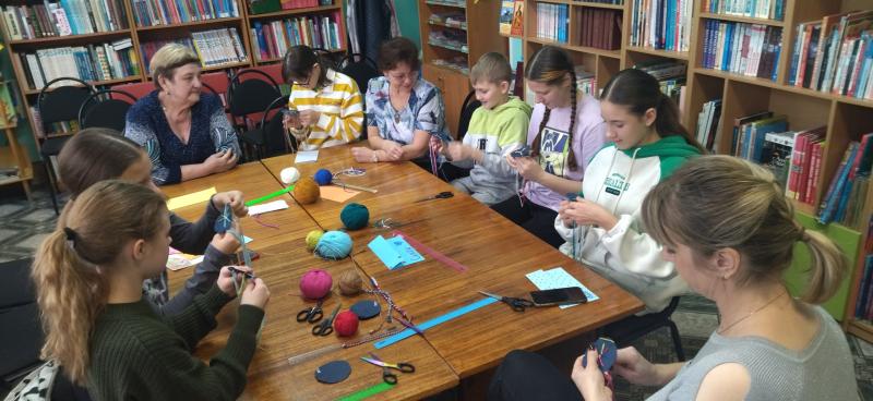 Вместе с почитайками мы подобно мастерицам прежних лет освоили технику плетения круглых поясочков. Из разноцветных ниток с помощью картонной заготовки мы создали уникальные, не похожие друг на друга, текстильные украшения на руку. Этот процесс захватил ребят и они выразили желание создать такие поясочки для своих близких.
