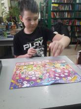 К настольным играм относится большое разнообразие интересных игр-бродилок. На очередном занятии мы с ребятами познакомились с одной из них -"Супер - герой" из журнала "Непоседы". В ходе игры надо было выполнять разные задания: отжаться от пола 6 раз, изобразить какое-нибудь животное, найти книгу в фонде и т.д. Ребятам очень понравилась игра.