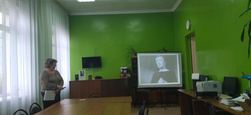 В годы Великой Отечественной войны Ольга Федоровна, как и другие ленинградцы, жившие в осаждённом городе, испытала тяжёлую дистрофию, но именно в это время создала свои лучшие поэтические произведения. Её голос стал символом стойкости и надежды в самые страшные дни блокадного Ленинграда. Библиотекарь познакомила читателей с биографией известной советской поэтессы, рассказала о её личных трагедиях, как не сломившись она своим творчеством давала силы другим. Ее голос и звучащие по радио стихи, вдохновляли земляков, заставляли держаться и бороться за свою жизнь, верить в победу. Стихотворения поэтессы стали иллюстрациями к биографии поэтессы. Прозвучала аудиозапись стихотворения «Мы ленинградцы» в исполнении автора. В завершении встречи присутствующие прочли наиболее тронувшие их поэтические строки и выразили желание познакомиться с творчеством Берггольц ближе.