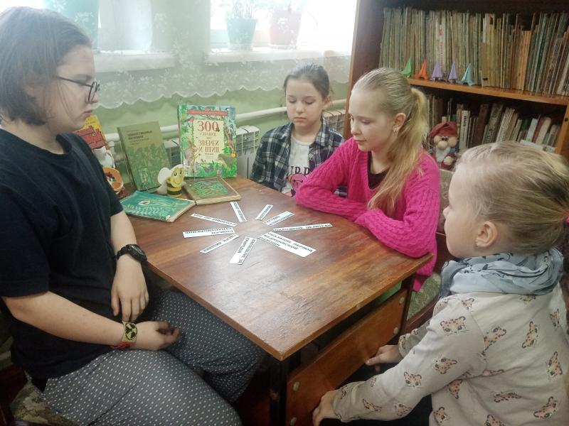 В ходе игры участники выбрали приметы, предвещающие ясную погоду, прослушав отрывки из книги «Беседы о русском лесе», отгадывали, о каком дереве шла речь, из предложенных карточек с изображением растений, убрали лишнее, собрали стихотворение И. Бунина «Бушует талая вода…». В конкурсе «Оказание медицинской помощи» узнали, какая первая медицинская помощь оказывается при переломах, какие бывают кровотечения, из названных предметов, выбрали те, которые необходимы для его остановки. Узнали, что за такие народные целители из конкурса с одноимённым названием, какое средство можно приготовить из них и при каких заболеваниях оно применяется. В конкурсе «Зоопутаница» дети рассмотрели изображение диковинной птицы, состоящей из частей других птиц. Нужно было определить, из частей каких птиц она состоит. Завершающий конкурс «Составь композицию» - творческий. Участники при помощи цветной бумаги и цветных карандашей составили композицию на тему «Весна».