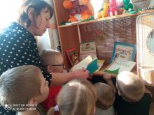 В первый день библиотекарем для воспитанников детского сада была сделана подборка книг детских писателей и поэтов. Дети с большим интересом просматривали книги, портреты авторов. В завершении прослушали рассказ Николая Носова «Огурцы».