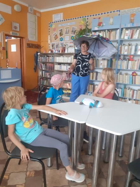 6 августа отмечается необычный праздник - День грибного дождя. Ребята, которые стали частыми гостями библиотеки, поучаствовали в игровой программе "Летний дождь". Грибной дождь — это слабый кратковременный дождь, при котором не наблюдается туч и приятно светит солнце. На землю попадает совсем немного влаги, которая образует идеальный микроклимат для роста грибов. После грибного дождика на небе появляется красивая радуга. Дети отгадывали летние загадки. Почитали сказку Владимира Сутеева "Под грибом". Узнали чем отличается грибной дождь от ливня, полосового и грозового дождя. Под музыку, различными движениями, изображали явления природы. Поиграли в игры "Солнышко и дождик" и "Я бегу по лужам". Итогом мероприятия стали рисунки под названием "Солнышко и дождик".