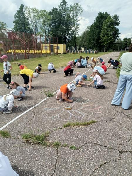 Наступило лето, и библиотека снова встретилась с учащимися в летнем оздоровительном лагере при Ильинской СОШ. Тема встречи - "я рисую лето". В начале мероприятия прочли стихи о лете, обсудили за что мы любим это время года, его погоду. Отгадали летние загадки. Поговорили о тех, кто пишет картины, иллюстрирует книги, о художниках и вспомнили, какие орудия труда есть в этой профессии. А затем вышли на улицу, провели разминку и приступили к коллективному творчеству, нарисовав двумя командами с помощью эстафеты по цветку. Завершили мероприятие рисунками на свободную тему.