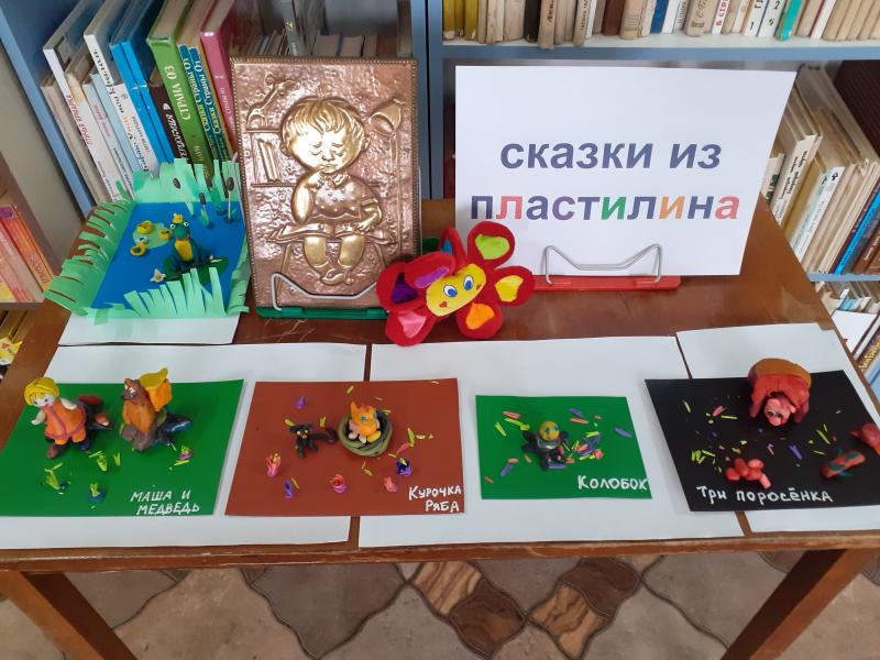 Ильинская библиотека снова пригласила ребят побывать в гостях у сказки. Мы уверены, что все дети их очень любят. "Сказки из пластилина" - так называлась наша творческая мастерская. Наши юные читатели посмотрели сказочные мультфильмы и отгадали загадки. Затем свои работы они создавали с помощью пластилина. Для того, чтобы дать простор фантазии наших друзей и реальнее представить будущих персонажей поделок, мы вместе вспоминали, как они выглядят в сказках. Все пластилиновые герои размещены на выставке в библиотеке.