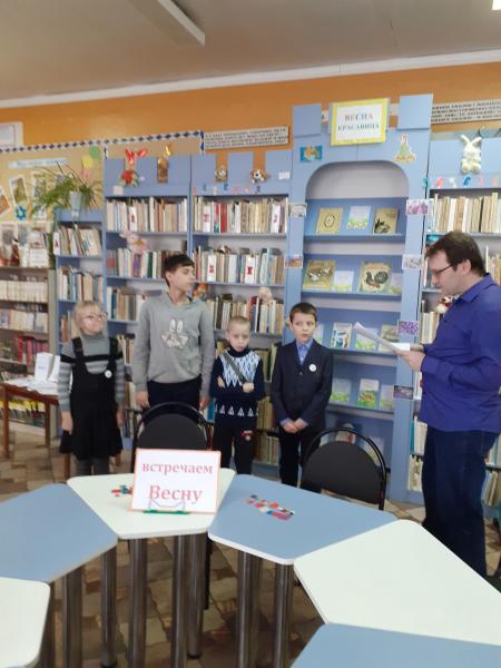 Вот и пришла весна. Солнце начинает появляться на небе всё чаще, небо становится более ярким , густо-синим, тает снег и бегут ручьи. В это волшебное время года просыпается природа. Библиотекари вместе с детьми совершили путешествие под названием "Встречаем весну". Ребята останавливались на станциях. Первая - "Весна-красна", дети читали стихи, выбрать которые можно было на выставке. Вторая - "Весенние приметы", вспомнили какие приметы соответствуют каждому месяцу весны. Третья - "Собери пословицы", из слов составляли пословицы. Четвёртая и пятая - "Загадки- отгадки" и "Кто быстрее ответит?", показала эрудицию участников мероприятия. Шестая станция "Акварельная", встретила ребят предложением нарисовать весеннюю природу. Этому прекрасному времени года посвящена выставка "Весна -красавица".
