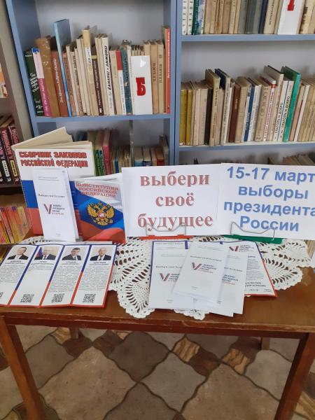 15-17 марта 2024 года состоятся выборы Президента Российской Федерации. В библиотеке проводятся информминутки у выставки «Выбери своё будущее». Для пользователей подготовлены буклеты, в которых они смогут найти ответы на вопросы: что такое выборы и как они организуются, о принципах избирательного права, о стадиях избирательного процесса, смогут познакомиться с кандидатами на должность Президента Российской Федерации.