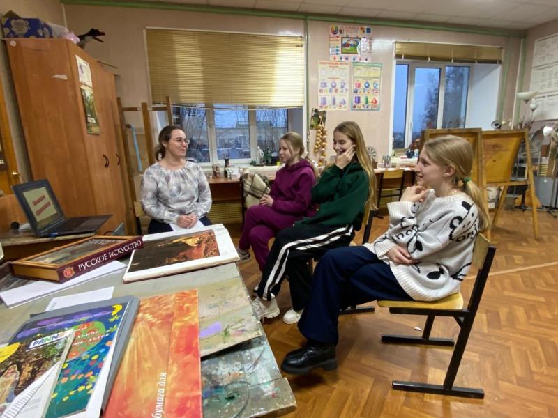 Преподаватель ДШИ Ю.А. Никоноров подчеркнул в беседе особенности мастерства художников. Каждое произведение искусства навеяло на ребят свои ощущения и передало особое настроение, впечатлениями от которого ребята поделились в беседе.