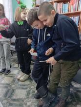 В ходе игры школьники узнали о птичьих повадках и привычках, о полезном и вкусном для них корме. Две команды «Воробьи» и «Синички» соревновались в отгадывании загадок о птицах, пытались узнать птичьи голоса, "учились" кормить птенцов и др. В заключении ребята раскрасили деревянную фигурку птицы себе на память.