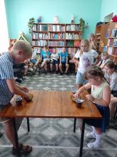В центральной библиотеке для воспитанников летнего оздоровительного лагеря Западнодвинской СОШ№1 прошла игровая программа «Сказочный алфавит». Ребятам была предложена викторина по любимым с детства сказкам. Дети охотно вспоминали сказки и отвечали на заданные вопросы, а так же участвовали в конкурсах. Например, вспомнив сказку о Золушке ребята перебирали крупу, в «Сказке о рыбаке и рыбке» ловили рыбу, и летали на ядре, как барон Мюнхгаузен ( воздушные шарики).