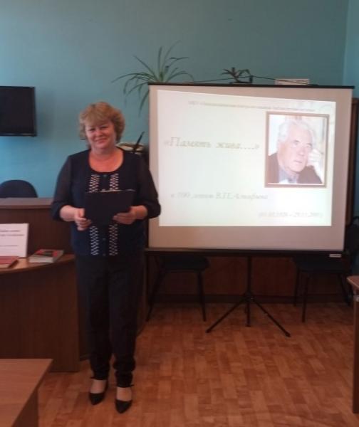 Литературный час "Память жива" по творчеству Виктора Астафьева прошел в центральной библиотеке. С биографией писателя и главными его литературными произведениями познакомились читатели библиотеки. Особое внимание было уделено заслугам и наградам писателя в литературе.