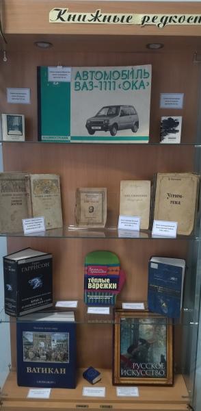 Своеобразным поздравлением для всех посетителей стала выставка, представленная в фойе библиотеки "Сокровища книжных полок". В витринах условно представлены два ее раздела - "Книжные сокровища" и "Детство с книгой".