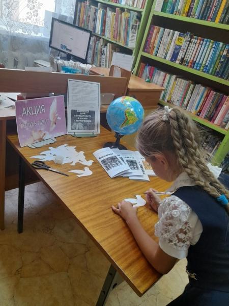 На абонементе детской библиотеке прошла акция "Голубь мира". Белый голубь — самый узнаваемый символ мира. Участием в акции каждый выразил свою солидарность в борьбе против терроризма!
