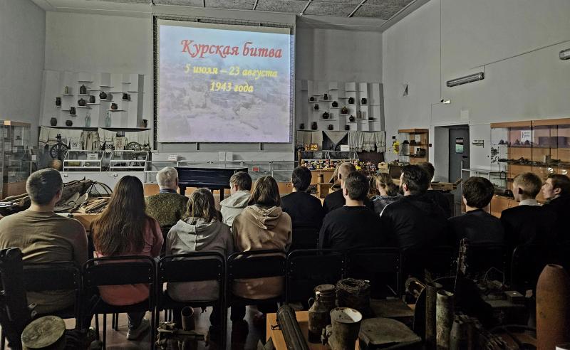 12 марта 2025 года в историко-краеведческом музее для студентов 1 и 18 групп Западнодвинского технологического колледжа им.И.А.Ковалёва прошел час истории «Курская битва – июль 1943» из Цикла мероприятий под названием «Шаги великой Победы». Сражение на Курской дуге, проходившее с 5 июля по 23 августа 1943 года, по своим масштабам, задействованным силам и средствам, а также по результатам и военно-политическим последствиям является одной из ключевых битв Великой Отечественной войны. В ходе мероприятия методист музея рассказала студентам о мужестве и героизме советских солдат, о командующих фронтами и об успехах стратегической операции под Курском. Ребята узнали какую роль сыграла разведка, раскрывшая планы немецкой операции «Цитадель» и откуда взялось название «Курская дуга», а также о самом крупном сражении бронированных машин за все время Великой Отечественной войны – танковом сражении под Прохоровкой.