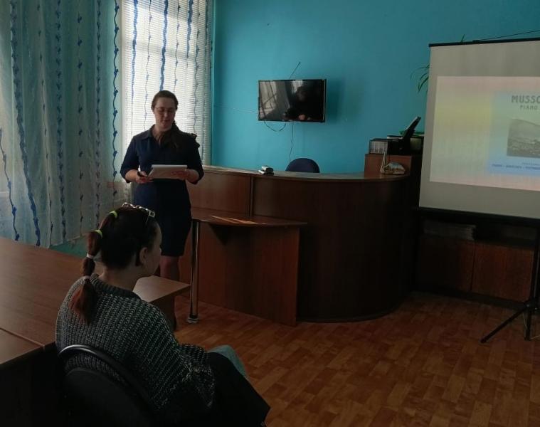 15 марта в Центральной библиотеке состоялась музыкальная гостиная «Творческое наследие М.П. Мусоргского», посвящённая биографии и творчеству одного из известнейших русских композиторов Модеста Петровича Мусоргского. Участниками мероприятия стали учащиеся 6-7-х классов Западнодвинской СОШ №1. В преддверии185-летия со дня рождения композитора библиотекарь познакомила школьников с биографией величайшего новатора в русской музыкальной культуре, проиллюстрировав своей рассказ электронной презентацией. Ребята узнали о его военном образовании и успехах в учении; о кружке «Могучая кучка» участником, которого он был; о портрете написанным Ильей Ефимовичем Репиным за несколько дней до его смерти. Разговор о судьбе и творчестве композитора сопровождали фрагменты его произведений «Баба яга», полька «Подпрапорщик», «Музыкальная картина «Ночь на лысой горе». Музей-усадьба композитора расположена в посёлке Наумово Псковской области, совсем недалеко от нашего города. Подъезд к ней отмечен величественной скульптурой Мусоргского в полный рост на постаменте в виде колокола. Побывать на родине композитора и вдохновится прекрасной атмосферой его усадьбы библиотекарь пожелала учащимся по окончании встречи.
