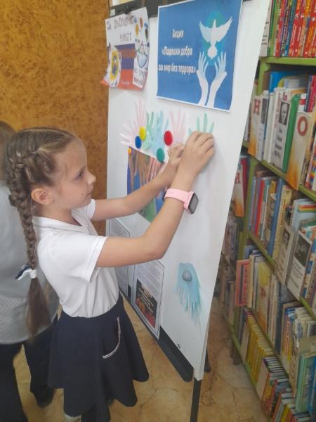 -4 сентября на абонементе детской библиотеки прошла акция «Ладошки добра за мир без терроризма».