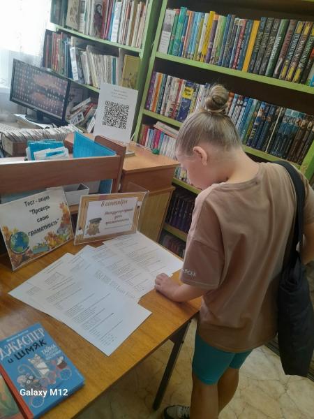 В этот день на абонементе Детской библиотеке ее юные посетители стали участниками тест-акции «Проверь свою грамотность». Им предстояло ответить на вопросы каверзного теста и вспомнить грамматику русского языка. Ребята удачно справились с заданием, а если и были какие-либо пробелы в грамотности, то они восполнили их, узнав правильные ответы в представленных библиотекой книгах.
