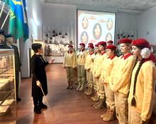 Это был осознанный выбор - стать военным, воином, защитником. Служил он в прославленной 76-й Десантно-штурмовой дивизии. С первых дней начала специальной военной операции участвовал в боях, не единожды проявив себя смелым, мужественным и отважным воином. Презентация с фотографиями и фидео из семейного архива дополняли рассказ сотрудника музея и позволили юнармейцем узнать каким человеком в жизни был Иван Ахтырский.