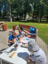 Любой желающий сможет полистать журналы, удобно расположившись на скамейках в тени деревьев. Детям будут предложены раскраски, цветные карандаши, настольные игры. А также можно будет принять участие в мероприятиях, проводимых работниками библиотеки.  И первыми пользователями стали воспитанники летнего лагеря ДДТ. Для них прошла спортивная игра "Star-Старт". Переде началом соревнований ребята вспоминали и перечисляли какие виды спорта они знают. Затем разделились на две команды и соревновались в эстафетах:"Палочки - выручалочки», «Кенгуру», «Бег с мячом», «Передай мяч», «Прыжки с гантелями».  Все участники справлялись хорошо и получили заряд бодрости и задора, хорошее настроение и удовольствие от движения!  Также все желающие могли полистать журналы, почитать книги, разгадать кроссворды, поиграть в настольные игры.