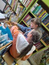 "Собаки и кошки в одной обложке". С помощью презентации ребята приняли участие в викторине о литературных собаках и кошках. Дети с удовольствием принимали участие в играх "Помай рыбку", "Собери мячики, "Продолжи название". Самые активные получали сладкие призы.