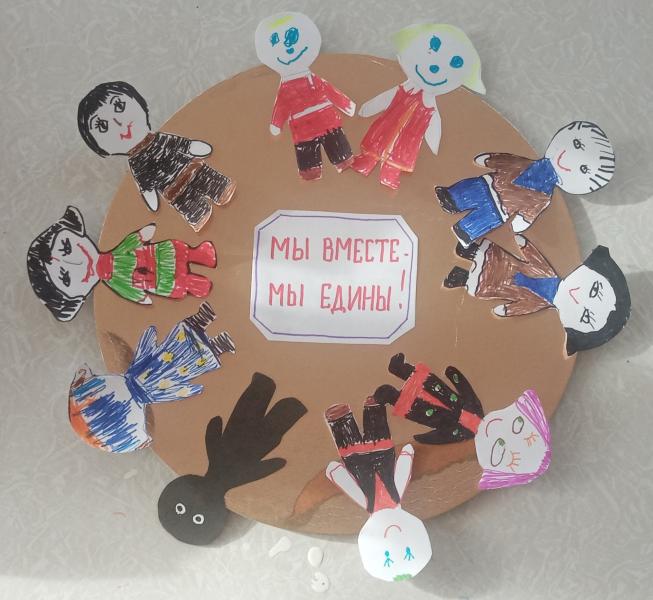 На кружке «Малышок» воспитанники под руководством библиотекаря и воспитателя изготовили коллективную работу «Мы вместе – Мы едины!», в которой изобразили единство народов нашей страны. Дети школьного возраста познакомились с историей этого праздника, с событиями далёкого 1612 года. Приняли участие во Всероссийской детской культурно-просветительской акции "Я - россиянин", разработанной Фондом поддержки образования "Ноосфера". Просмотрев видео-презентацию «Я – россиянин», выполнили ряд заданий в рабочих тетрадях, одним из которых было написать фразу "Мир вам" на четырёх языках.
