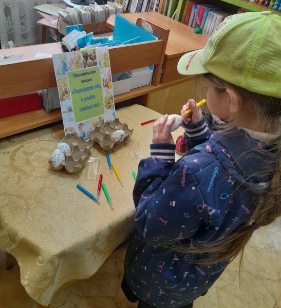 3 мая на абонементе детской библиотеки прошла пасхальная акция "Разноцветие яиц, и улыбки светлых лиц".