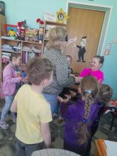 Вначале детей познакомили с театром кукол, его историей, биографией руководителя - С.В. Образцова. Ребятам показали отрывки из кукольного спектакля «По щучьему веленью». Сюрпризом для детей было появление клоуна Бантика, а потом состоялось знакомство с книгой. С 1994 года фонд выпускает и дарит детям с нарушениями зрения по всей России цветные объемные «говорящие» книжки с тактильными вставками!  В процессе знакомства дети смогли все посмотреть и пощупать , остались очень довольны.