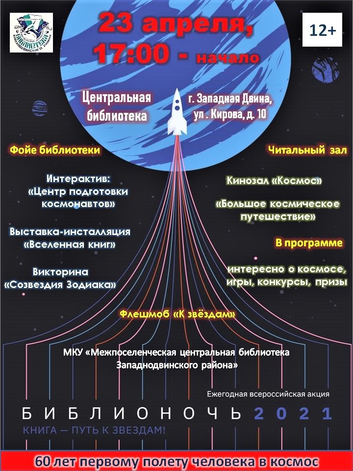 Накануне Дня авиации и космонавтики многие мероприятия библиотек нашей системы были посвящены первому полету человека в космос, который 12 апреля 1961 года совершил Юрий Гагарин.