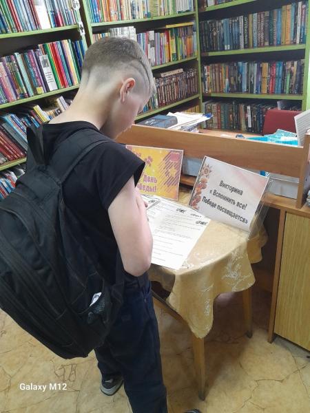 6 и 7 мая на абонементе прошла викторина "Вспомнить всё! Победе посвящается", посвященная 80-летию Победы в Великой Отечественной войне. Викторина состояла из различных вопросов в которых нужно было выбрать правильный ответ.Все участники проявили свои знания, а также узнали много нового. За участие в викторине юные читатели получали призы.