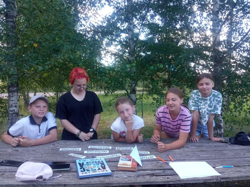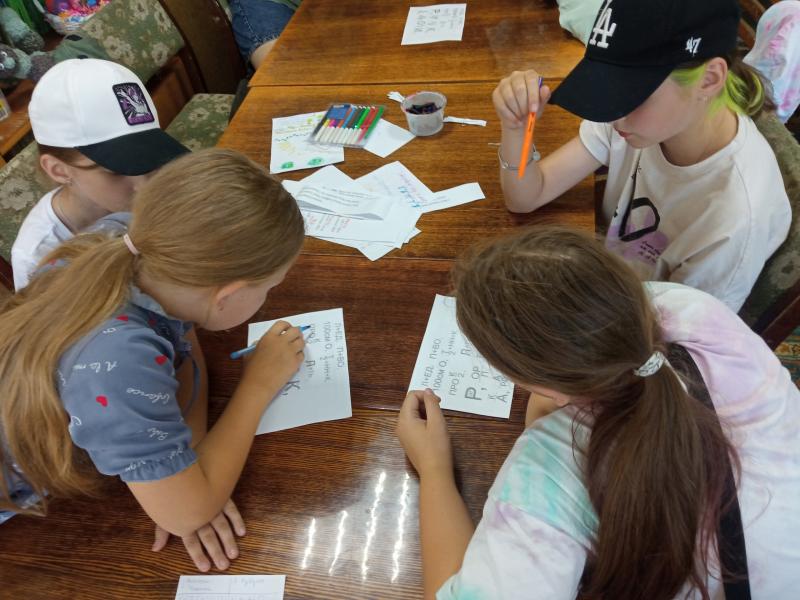 Перед началом игры участники получили маршрутный лист. В нём обозначены этапы, после прохождения каждого ребята получали букву и задание, которое необходимо выполнить. Конверты с заданиями были спрятаны на площадке перед зданием библиотеки. Для того чтобы найти место, где находится конверт, нужно отгадать загадку. Дети блестяще справились со всеми заданиями. Собрав все буквы, составили слово. И это слово … «МОЛОДЦЫ». Закончилось мероприятие чаепитием.